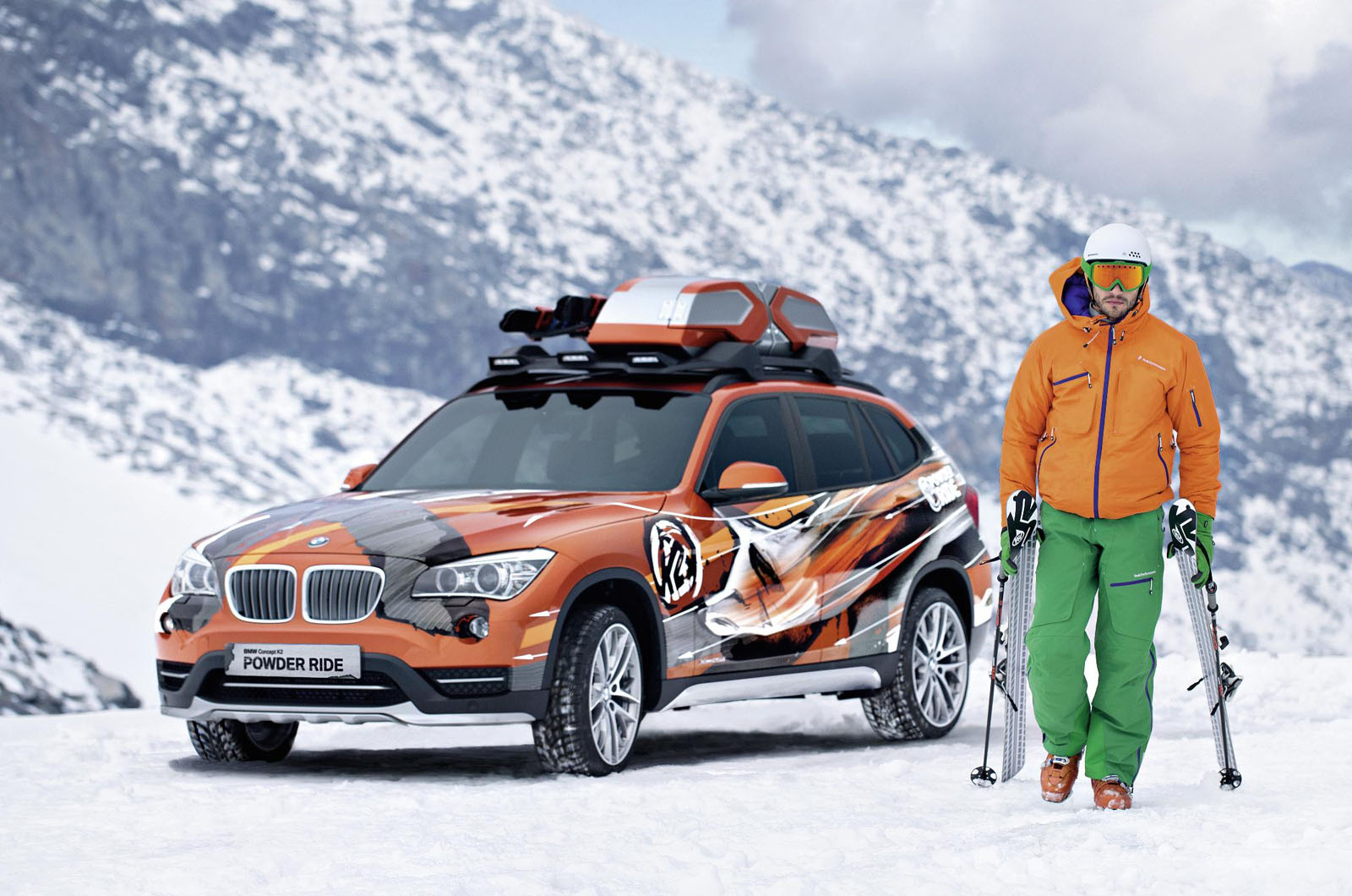 Ignore the car. The BMW X1 K2 Powder Ride is not on sale this side of The Pond anyway. The wrap might pick out the headlights nicely but that bulky item on the roof is a 320W speaker for impromptu mountain raves. Yeah.