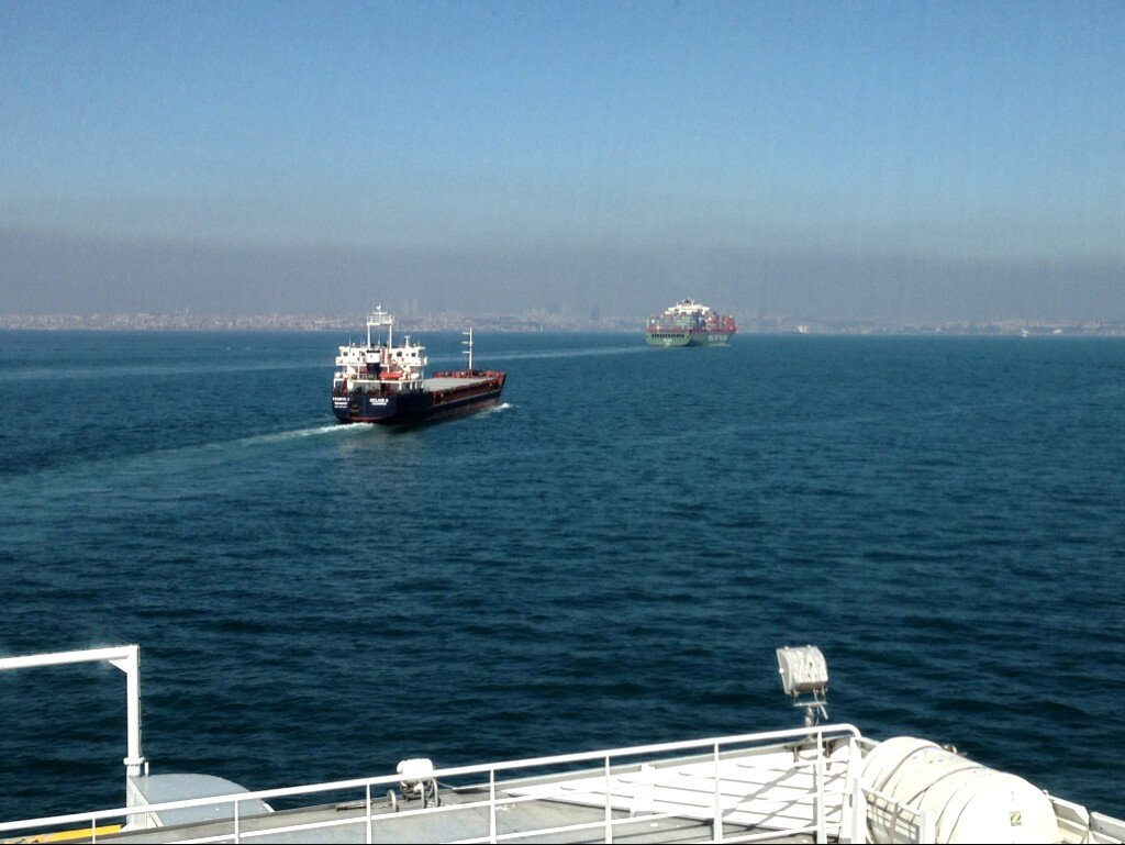 Ships heading for Bosphorus Strait. At the other end of the Sea of Marmara is Istanbul. Splitting the city is the Bosphorus Strait, the water way into the Black Sea, and hence Bulgaria, Romania, Ukraine, Russia and Georgia. Major Black Sea ports include Odessa, Sevastopol and – 2014 Winter Olympics/ Formula One host – Sochi.