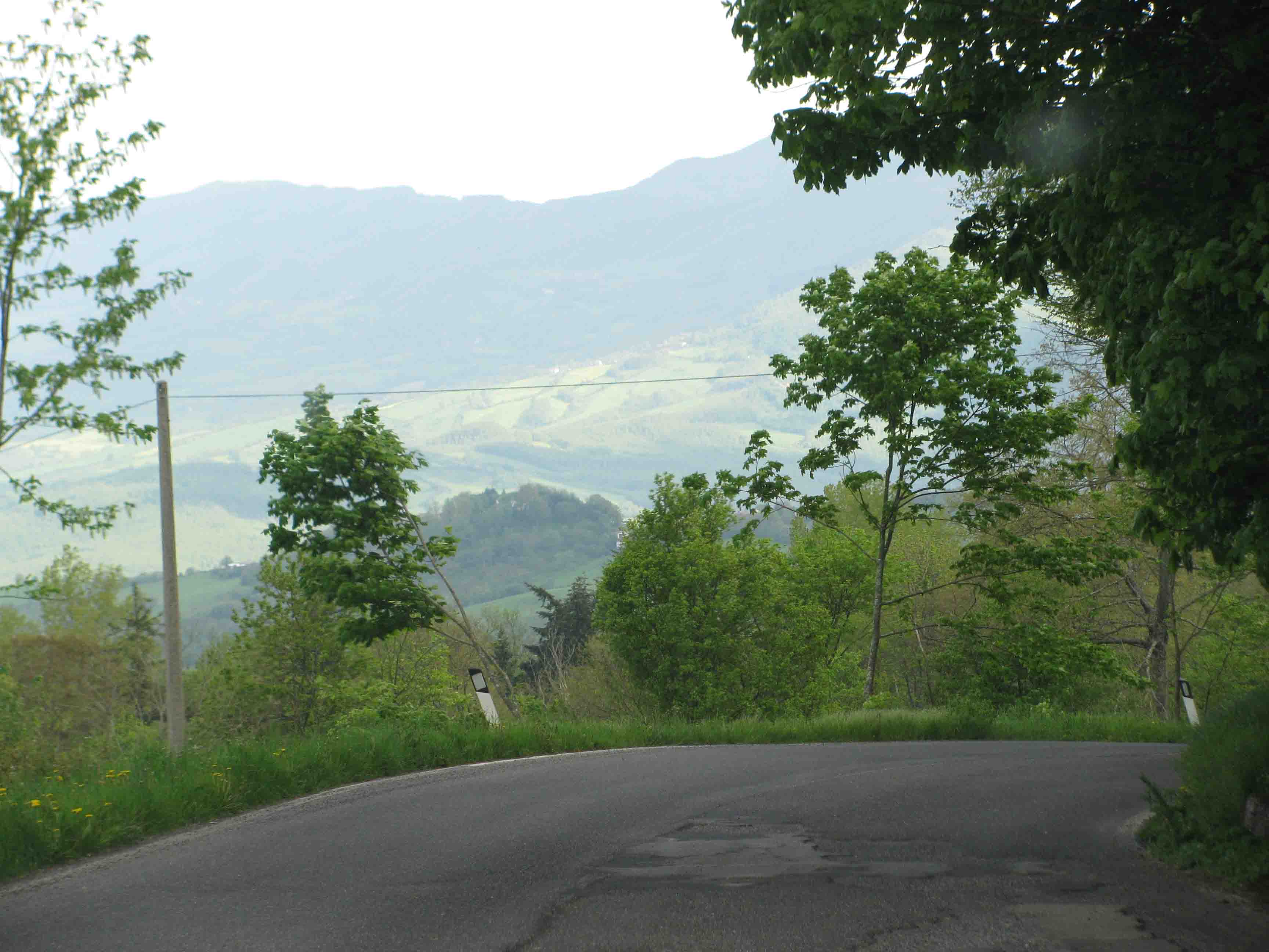 We stop for a breather in a big layby outside the first village, Livergnano.