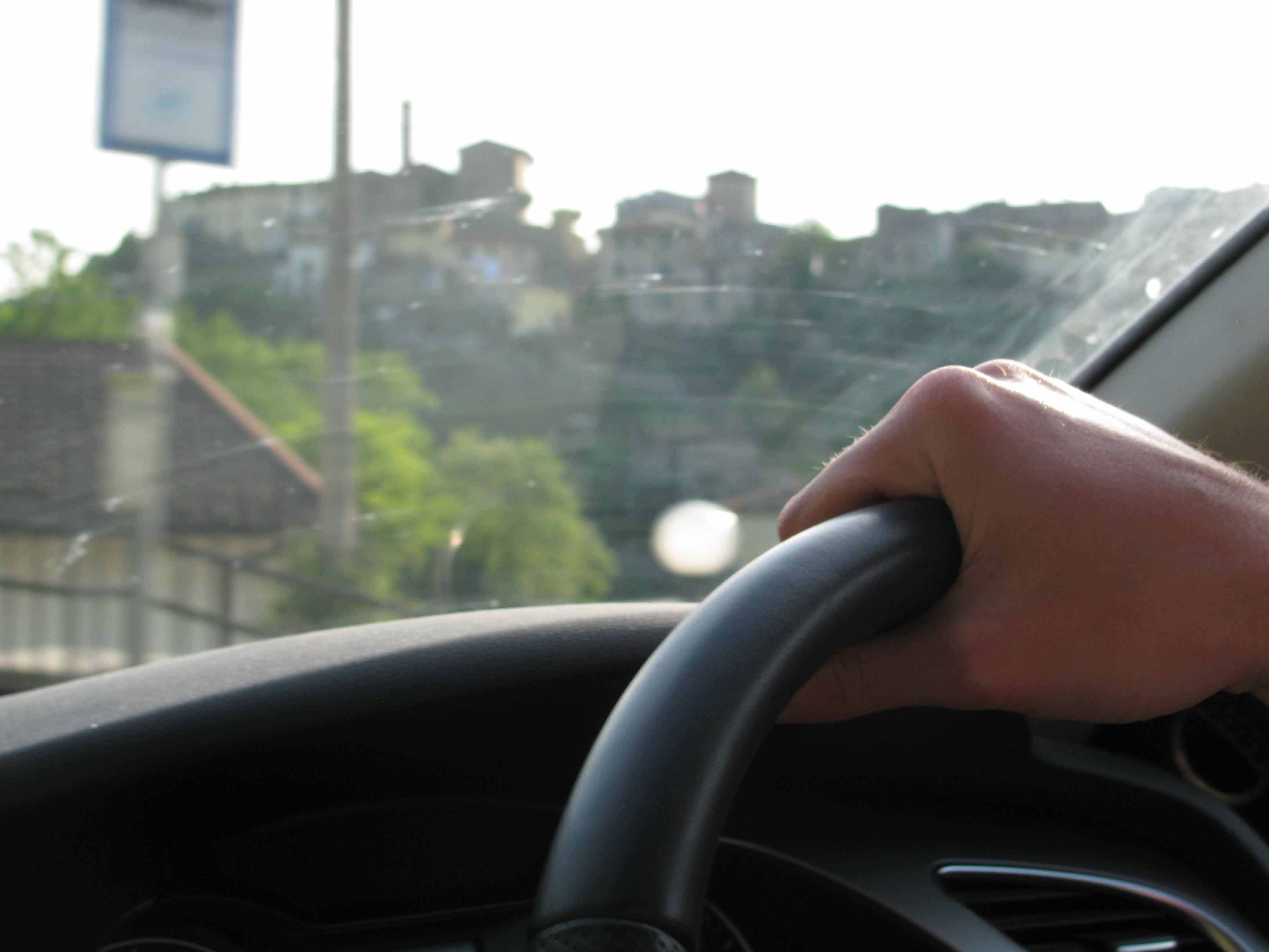 Our day: filthy windscreen… steering wheel in constant use… lovely towns and villages built on the hillside.