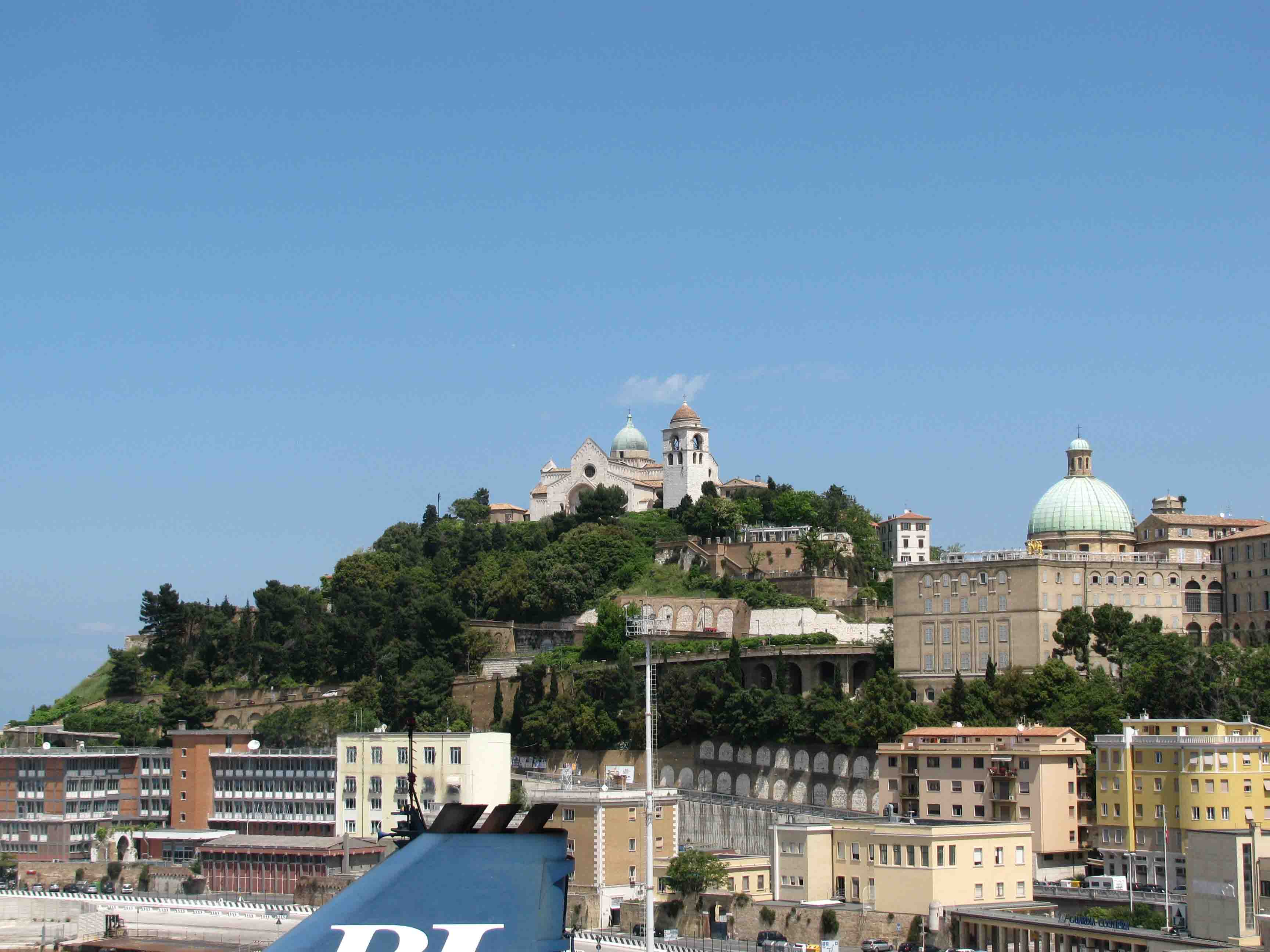 Those thinking to stay in Ancona the night before their sailing should check out the Grand Hotel Palace, on this hill. Port/town view double rooms can be had for around £130 B&B.