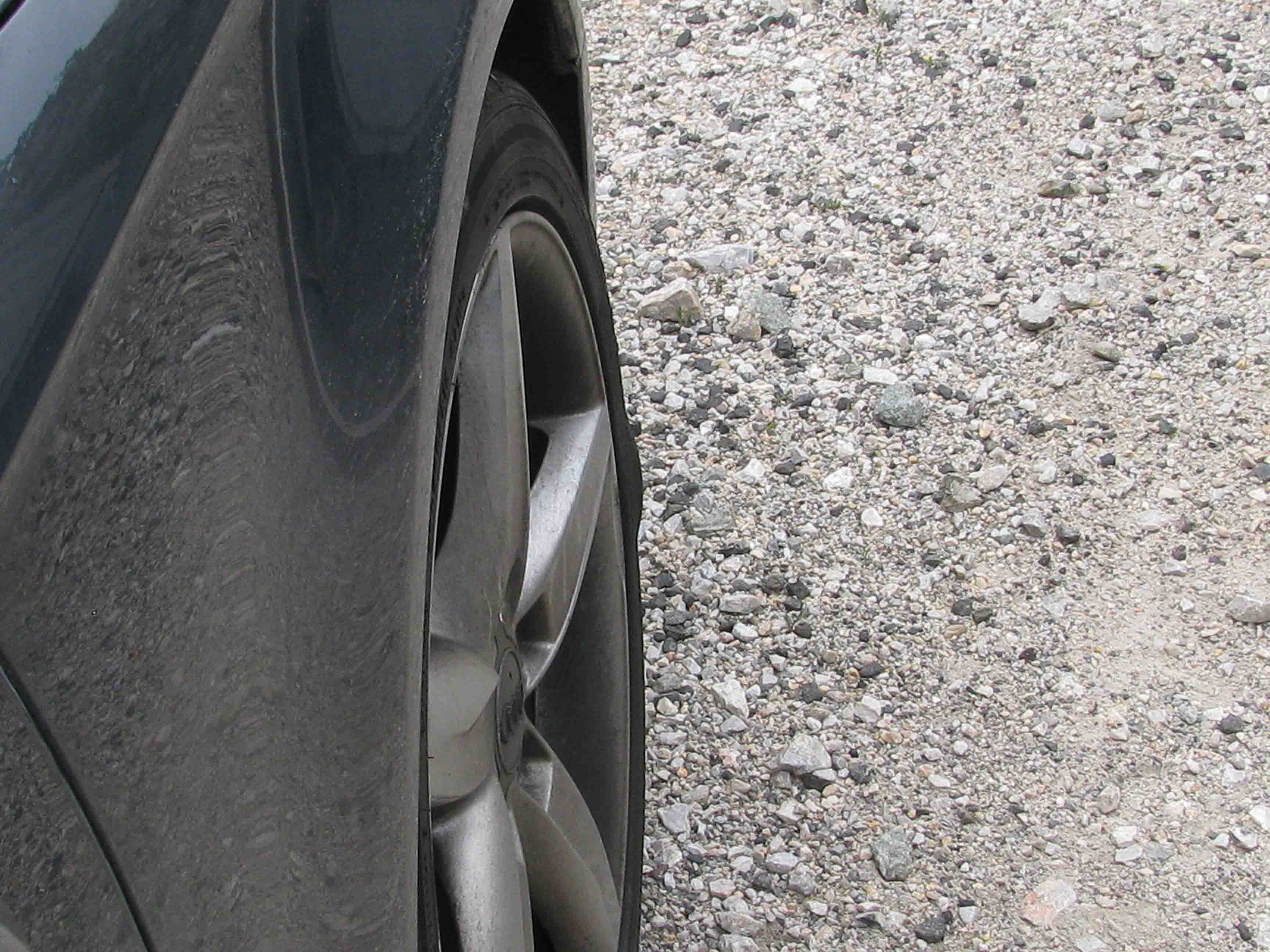 …the roads (motorway and main) were in decent nick. Except for one massive pothole. De facto we were too close to the car in front. The steering felt fine but we both knew we couldn’t possibly have got away with it, and so it proved.