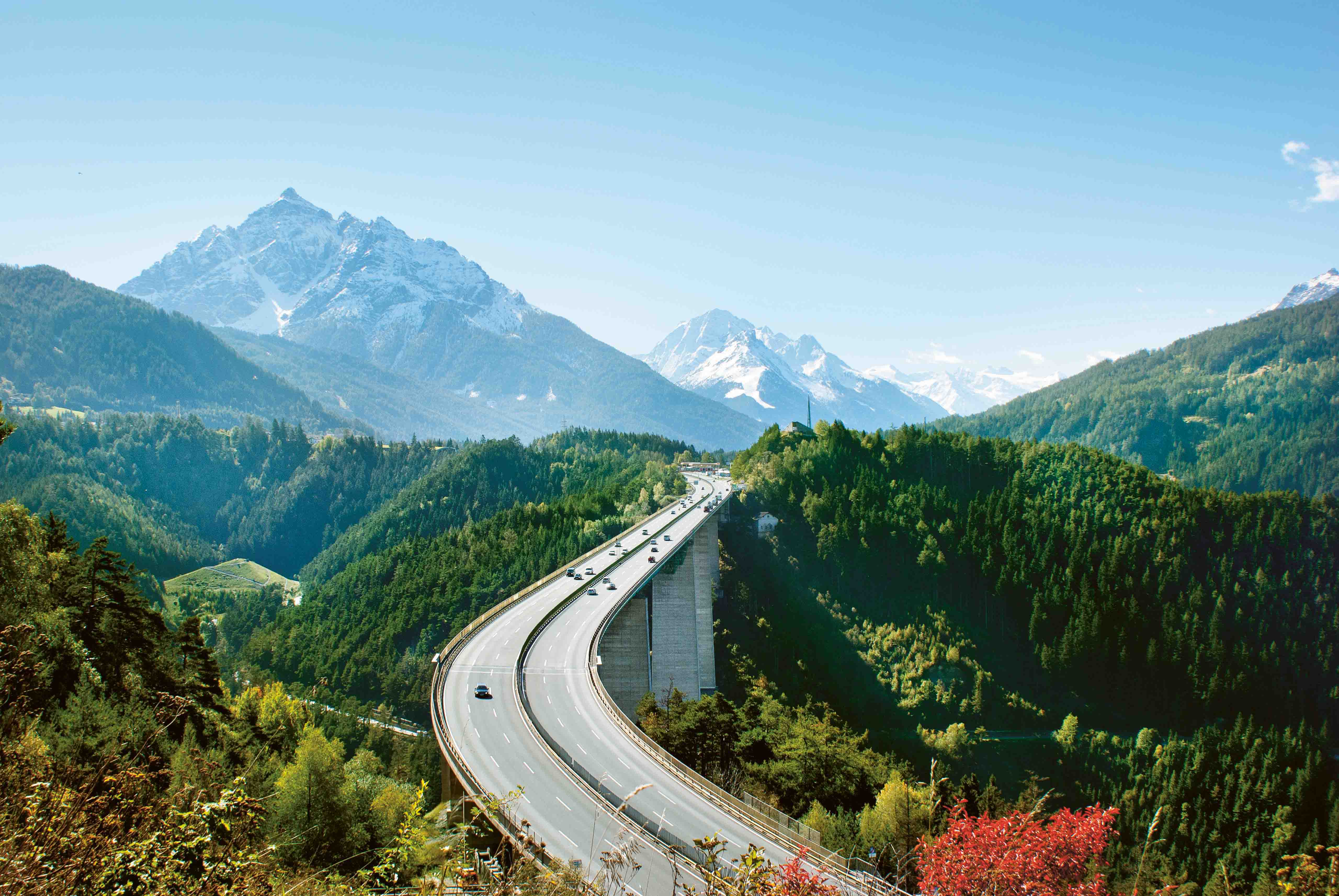 Austria. Europabrueke, Europe Bridge, on the A13 Brennerbahn, Brenner Motorway, between Innsbruck and the Italian border north of Bolzano. The busiest route through the Alps. Brennerbahn is one of the few motorways in Austria not covered by the vignette. The toll is €8.50 for a single trip by car, about 30 miles. If you only use A13 you don’t need to buy the vignette. Europabrueke, opened in 1964, used to be Europe’s highest bridge at 190m (620ft). Now looks puny beside the current record holder, the Millau Viaduct, on the A75 in southern France, at 270m (890ft). EB is now the sixth highest bridge in Europe and the 51st in the world though there’s absolutely no sense of that, fortunately, from the roadway because the barriers are so high. Photo: ASFINAG.