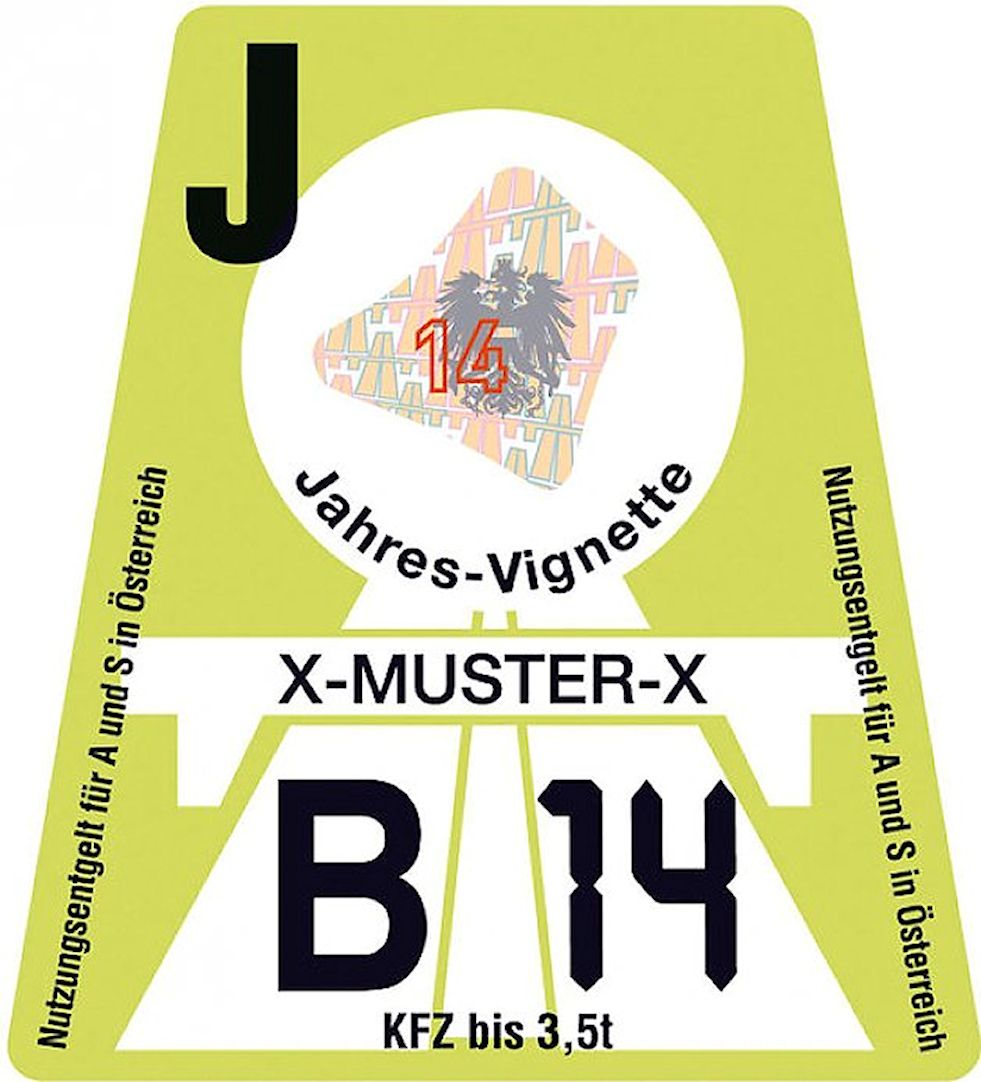 The price of the Austrian road vignette increases by 2.6% next year. This takes the price of the shortest 10-day sticker to €8.50 for vehicles below 3.5t (€4.90 for motorbikes). Two months will cost €24.80, twelve months €82.70. The new vignette – lime coloured for 2014 – goes on sale at the end of November, valid from 1 December. The annual sticker lasts until 31 January 2015. ASFINAG, the state roads company, sold nearly 24 million vignettes in 2012 for the Austrian population of 8.5 million. The majority, 17.4m, were for the ten day vignette. Only 3.8m were annual vignettes. All vehicles using Austria’s motorways and expressways must buy the sticker, apart from some roads which are charged individually via toll booths where a vignette is not necessary. For more information see www.asfinag.at (in English).