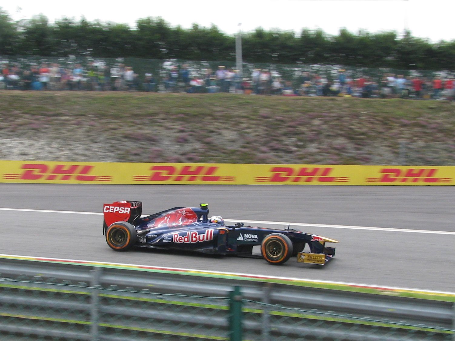 The best all-round view is surely from the outside of the Rivage Hairpin at the top of the circuit. Even the fastest cars struggle to top 50mph. That’s Sam Bird, by the way, an up-and-coming British driver – also tester for the Mercedes F1 team – on his way to pole position in the GP2 race (which he won the next day). With the pits in the distance, are you getting the extent of the elevation change around Spa-Francorchamps? 104m between the lowest and highest point. Calves ache after the first day and spasm by the end of the weekend.