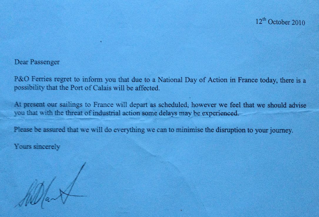 20:30 – @MyFerryLink, ‘We are currently experiencing delays at Dover due to Industrial Action in France.’ Like all the other operators it says to check in as normal.