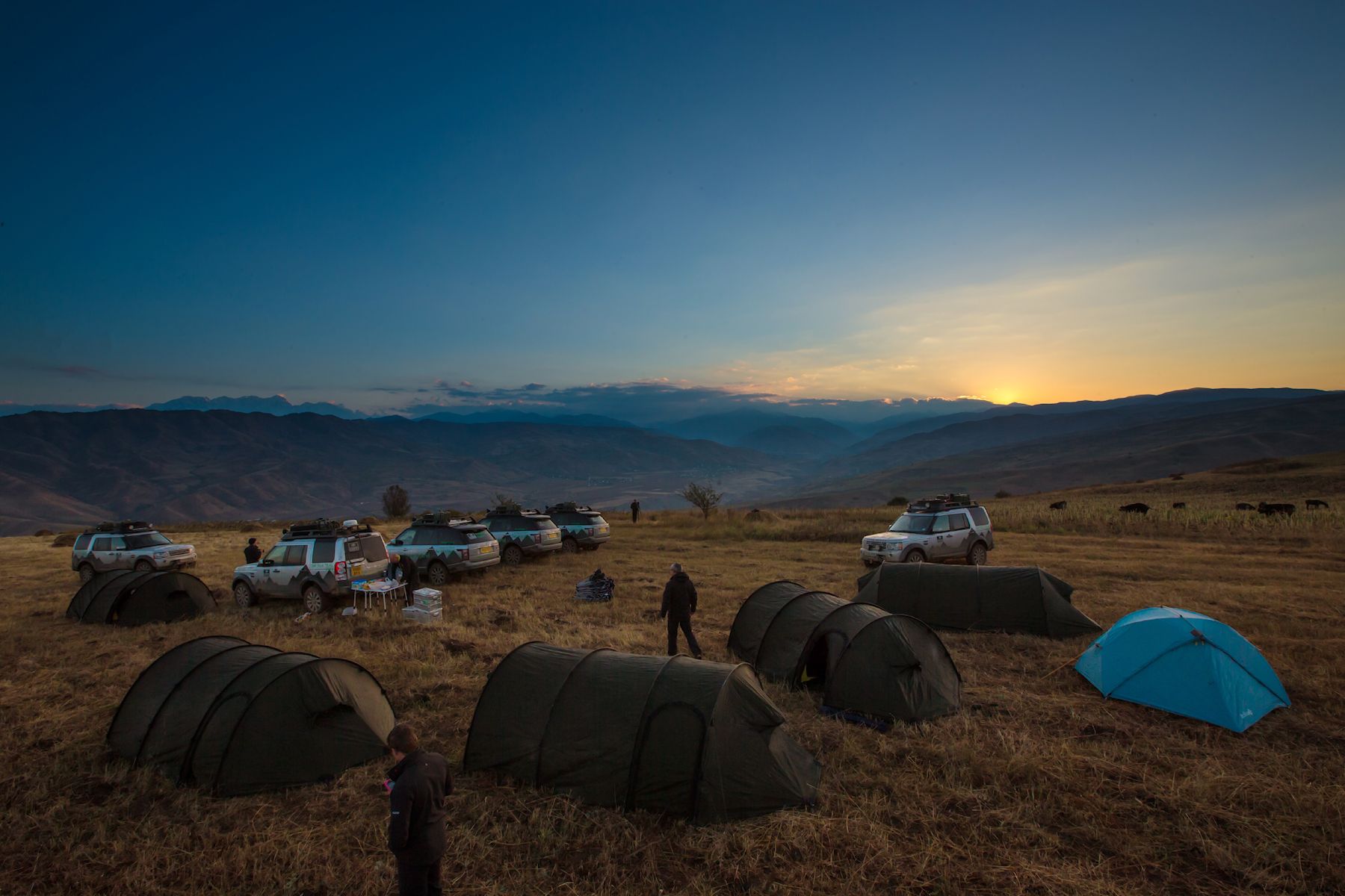 Possibly the hardest part of the expedition is stepping out of the cosseting luxury of a Range Rover to spend the night in a tent.