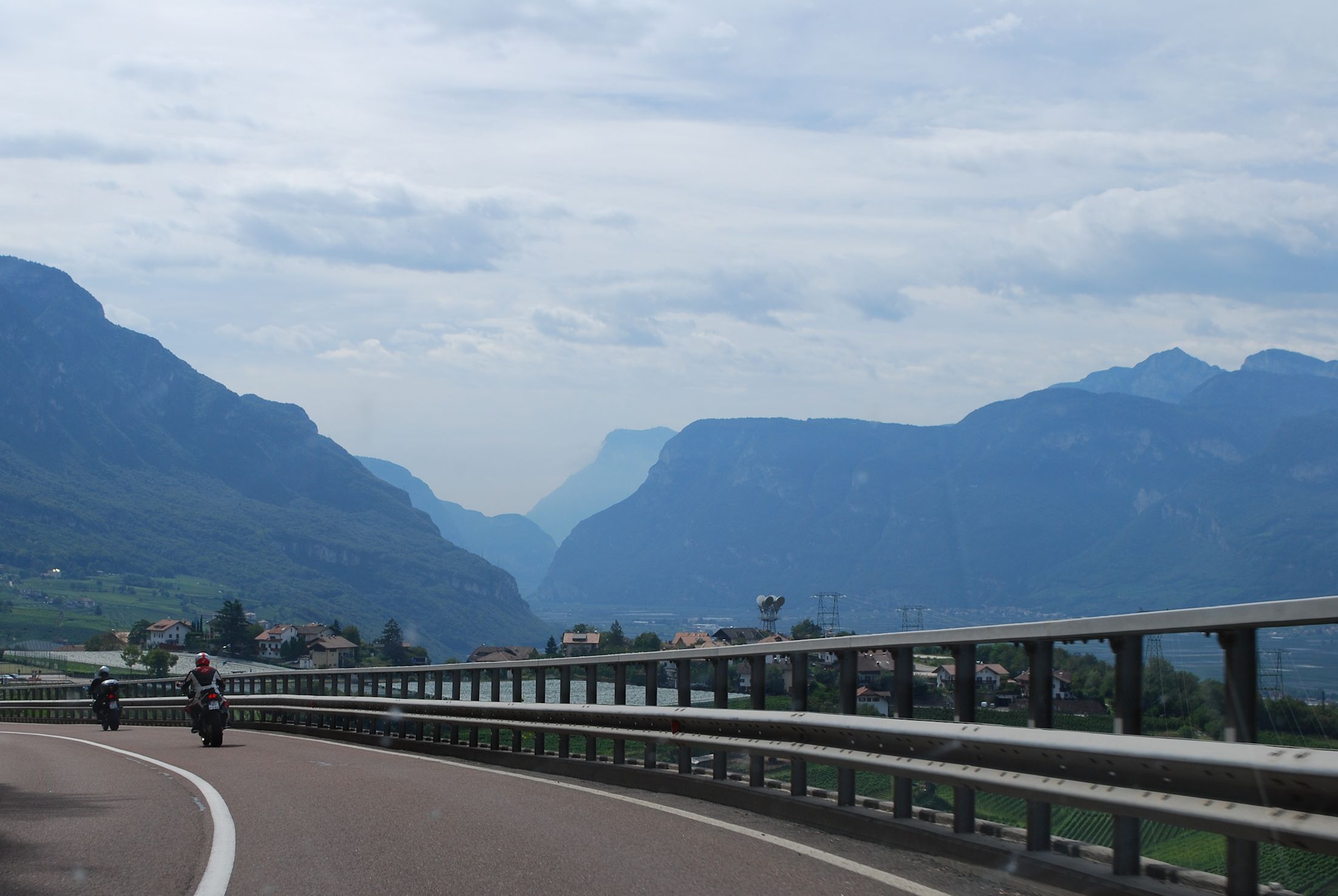 Italy: descending the Dolomites to join the A22 Brenner motorway, the busiest road through the Alps in the east. Runs south from Innsbruck, as the A13, then over the border, to Bolzano and Trento, hitching up with the major east-west A4 at Verona. You don’t need the Austrian vignette to use the A13, it’s tolled separately, as is of course the Italian section.