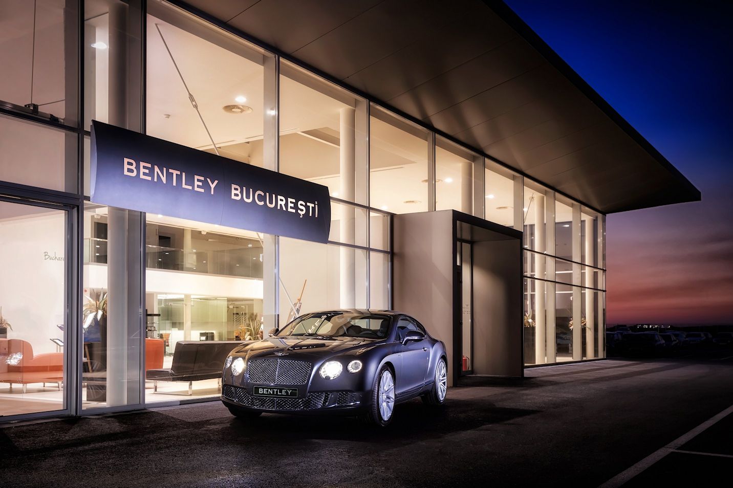 Bentley Bucuresti: in a sure sign of something, Bentley has opened its 45th European dealership, in Romanian capital Bucharest. The new showroom is on Bulevardul Pipera, north of the city centre just inside the ring road, close to Baneasa Forest. Further down is a cluster of other dealerships, Porsche, Audi, etc, though Bentley has developed a brown field site from scratch. Star of the opening last night was this newly-launched 520bhp POA Continental V8 S. The manufacturer has sold 1,081 cars in Europe so far this year, up 14% on the same period in 2012.