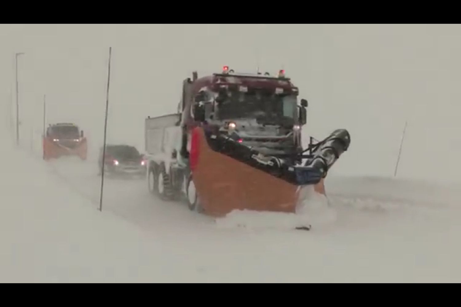 Norwegian drivers can’t afford to let snow storms get in the way so they fall into columns and follow a snow plough through the worst of the weather.