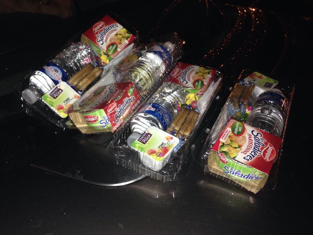 ‘Now in a holding area as motorway was blocked. Eurotunnel handing out emergency rations.. Long night ahead,’ tweeted Harry Metcalfe, @Harrym_evo on Saturday evening.