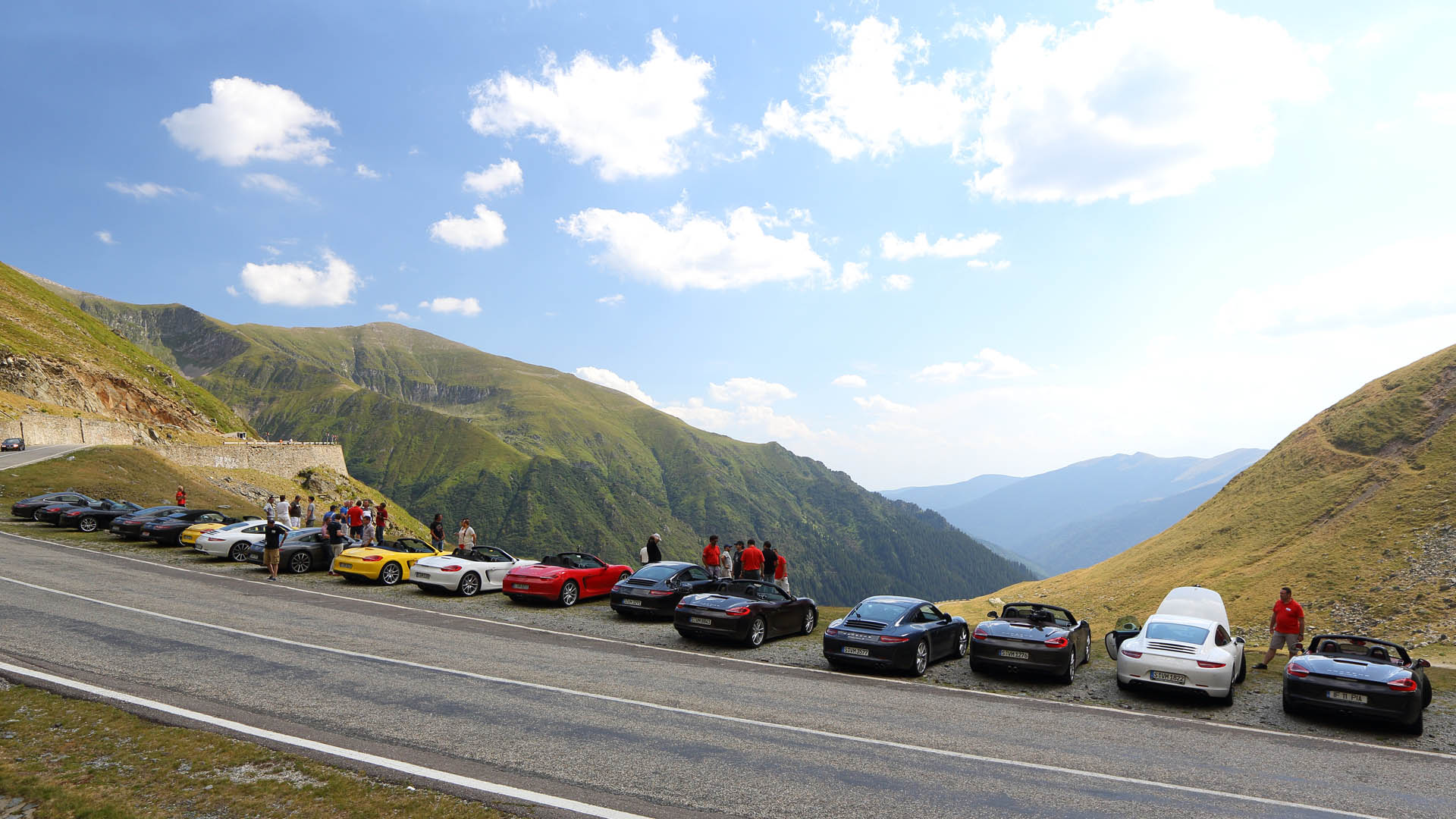 The Porsche Performance Drive lines up at the top of Transfagarasan on its way from Istanbul to Budapest in 2012.