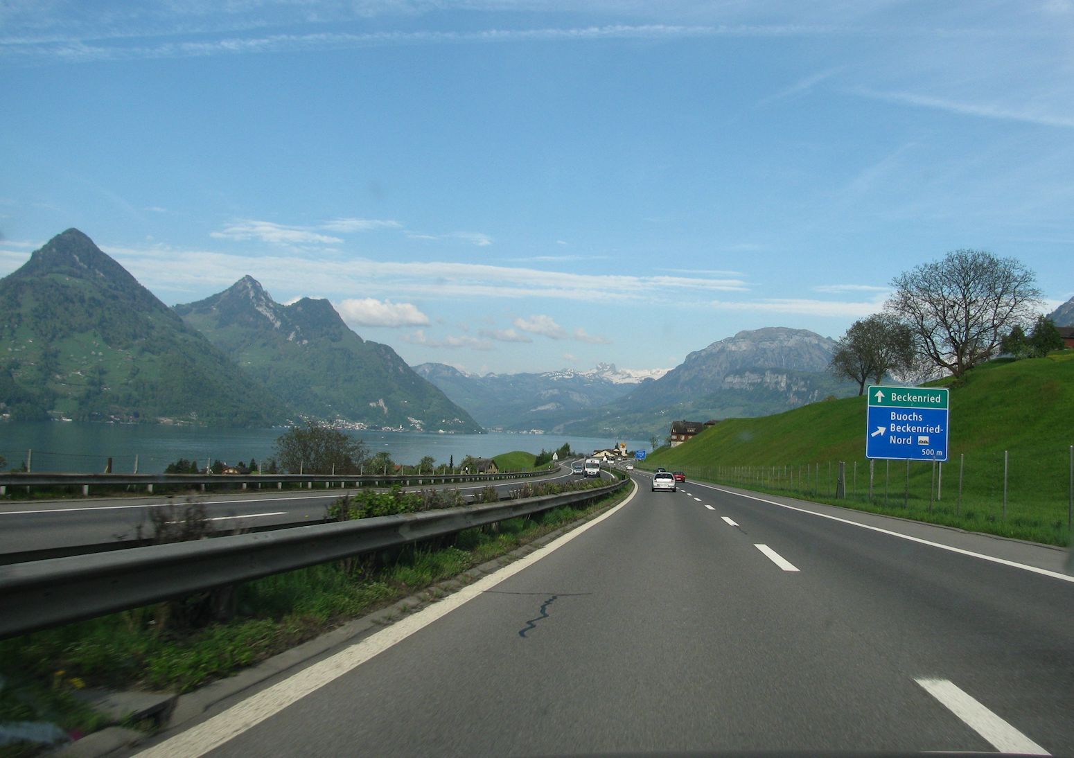 Everybody takes this picture and you can’t blame them, as the A2 southbound sweeps down beside Lake Lucerne in central Switzerland. The bogeyman is that 45 miles further along is the Gotthard Tunnel where, on high days and holidays, delays can easily reach two hours. Two lanes of traffic on one of Europe’s busiest north-south transit routes squeezes into the single track tunnel. Never mind. In good weather take the spectacular but safe Gotthard Pass instead from J40 Goschenen (or wherever you can depending on the queues). The upside is that the A2 south of Gotthard is great too, downhill for 50 miles to Bellinzona along the Leventina Valley.