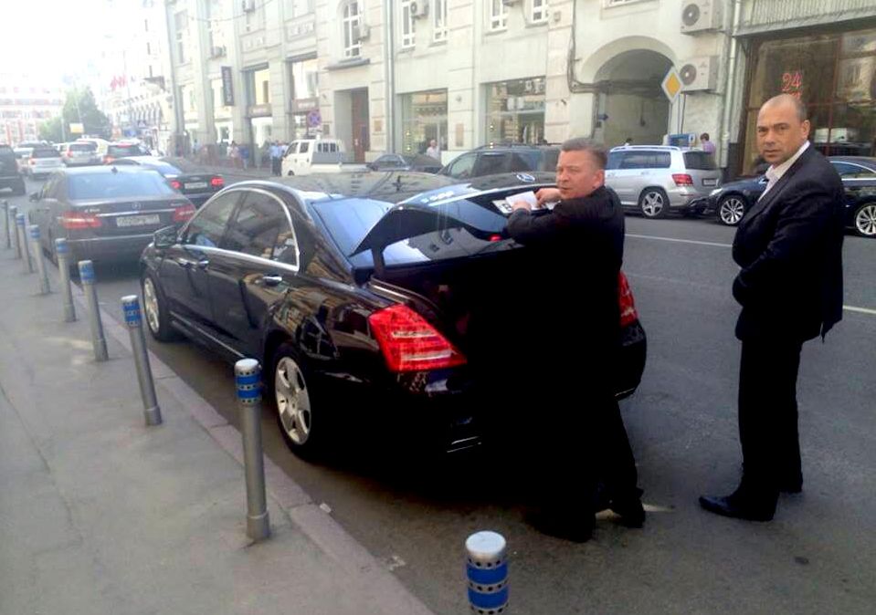 A Moscow limo driver caught in the act, sticking a sheet of white paper over the registration plate to avoid parking cameras. It’s a great tip, but would you dare? Photo @Yanoos