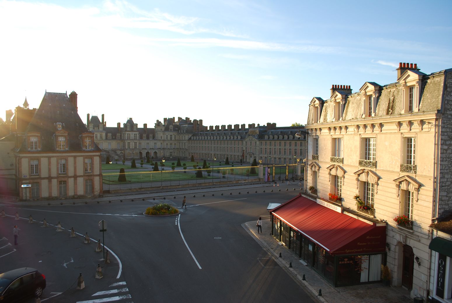 It was a reliable hunch that there would be a classical French hotel right opposite the Fontainebleau Chateau just south of Paris but we didn’t imagine a room could be for much less than €200 a night. After an, at times, frustrating drive on the single lane Route Nationals 6 & 7 from Chambery in south west France, we ended the day amid blue and white pastoral toile wallpaper and Louis Quinze antique furniture at the Hotel de Londres and paid €150, the same as costs right now.