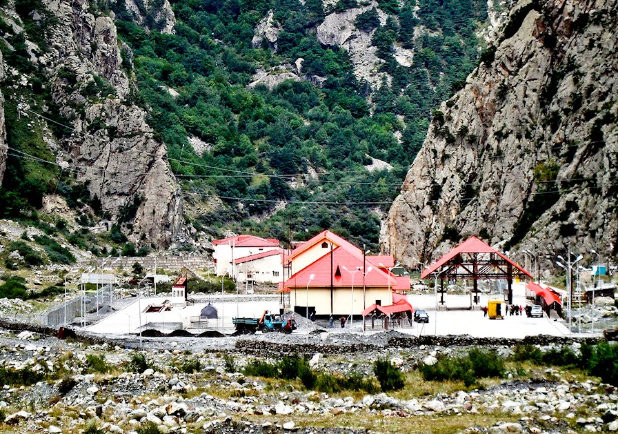 The Kazbegi-Larsi border station Georgia-Russia in the Dariali Gorge at the top of the E117 Georgian Military Road.