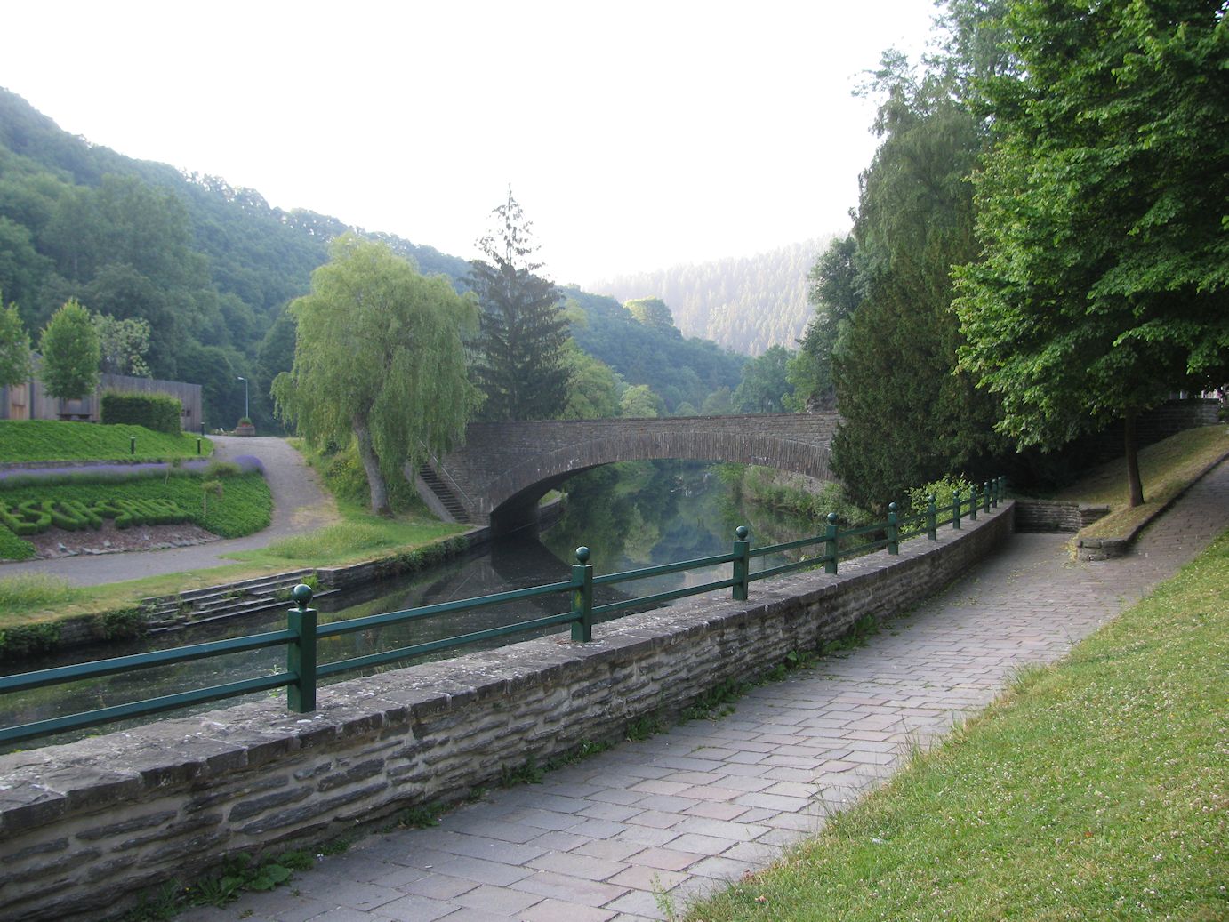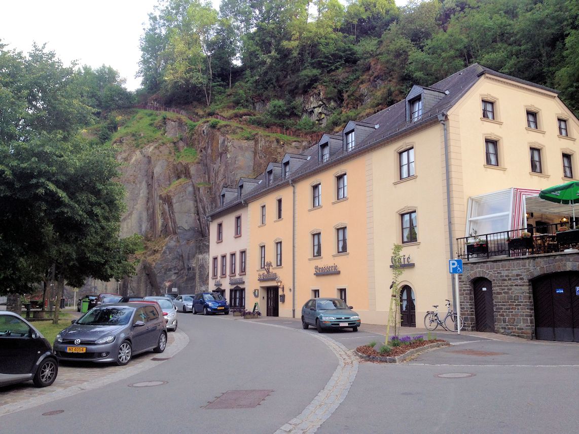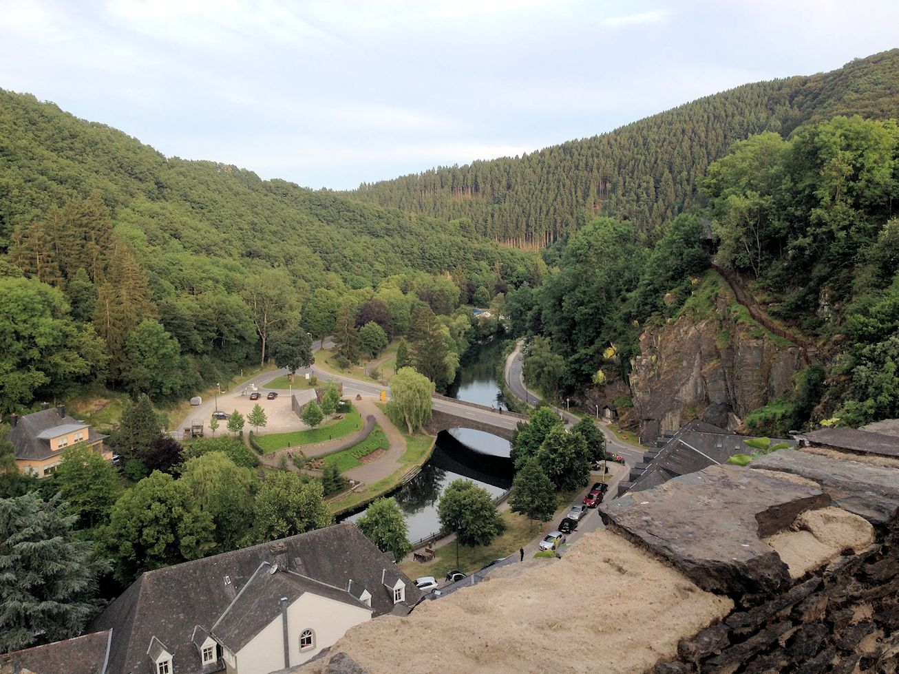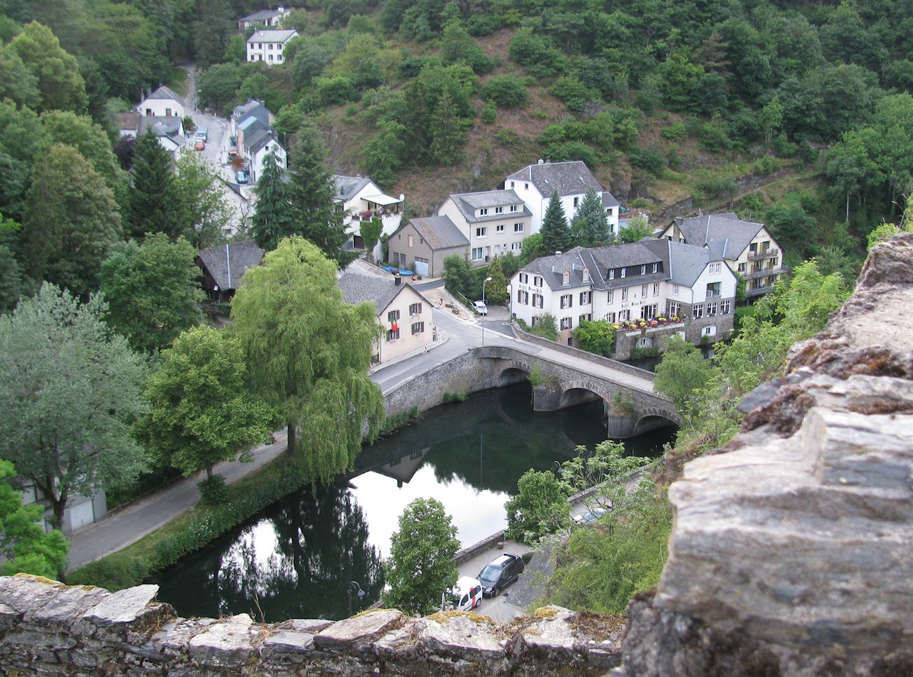Looking west. Despite being an obvious tourist destination, Esch-sur-Sure is hardly over-endowed with hotels. We tried to book into Hotel Beau Site, centre right, with a river terrace, but they were full. Double B&B €96-130, beau-site.lu. There’s also the Hotel de la Sure in the centre of town which looks lively – €29.50-92.50 per person, Hotel-de-la-Sure.lu – and a riverside campsite on the road into town, Camping “Im Aal”, camping-im-aal.lu.