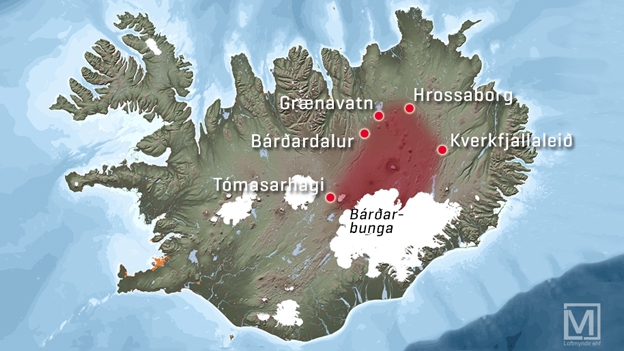 A special English language section of the National Icelandic Broadcasting Service has been set up to monitor the situation at the Bardarbunga volcano. The area in red is the danger zone, now evacuated, with roads closed all the way up to Route 1, but there are no definitive signs yet of an eruption. If it does the most likely result is massive flooding in the north. The last time a volcano erupted in Iceland, in 2010, European airspace was shut for a week and cross-channel ferries were packed out. For the latest info see ruv.is/volcano.
