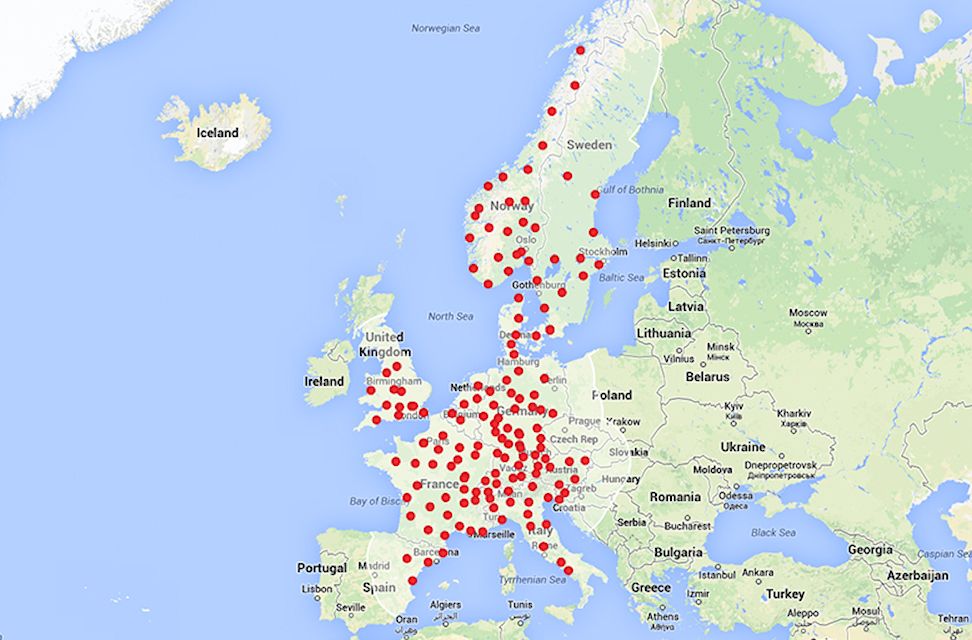 As Toddinton Harper – @Toddington_H – claimed at the weekend to be the first Englishman to drive to the South of France in a Model S using Tesla’s emerging Supercharger networ, the company tweets a picture of what the Continental network will look like by the winter. Founder Elon Musk responded personally to criticism that Portugal and Spain were sparsely covered – ‘Expansion to Madrid already underway. Map is being updated. All of Spain & Portugal by end of 2015’ – and that the company unaware the ‘Iron Curtain crumbled 20 years ago’ – ‘I agree,’ he said. ‘We are fixing this plan. Updated map coming soon.’ There is currently just one Supercharger open in Eastern Europe, in Ljubljana, Slovenia.