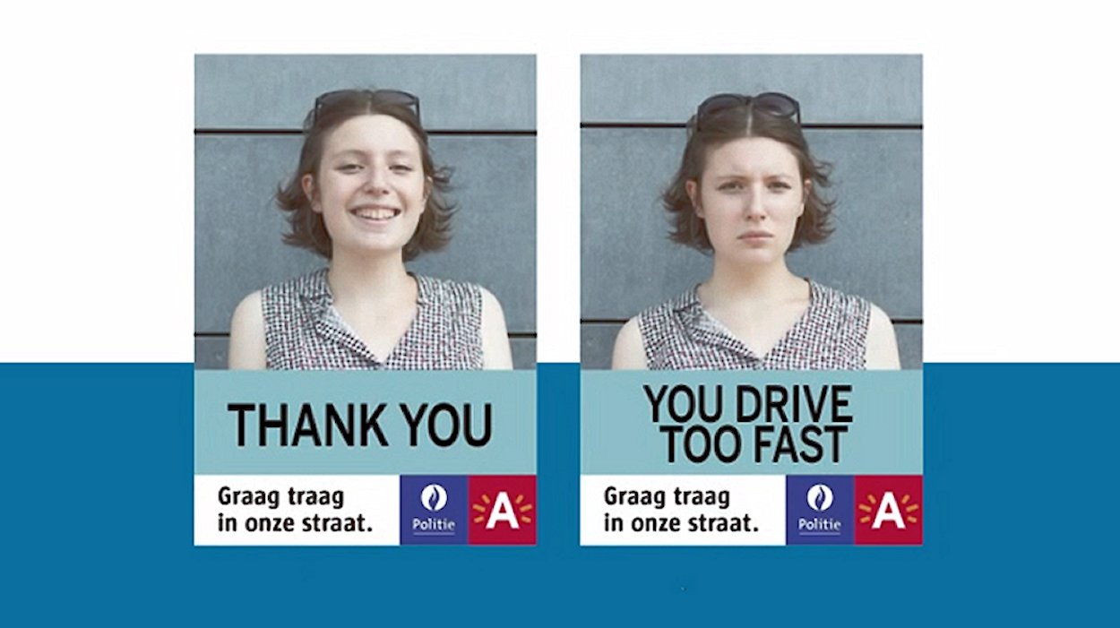 Antwerp: in an effort to personalise speeding, locals are being asked to upload two photos of themselves – one smiling, the other not – to be used on LED traffic signs. The idea is that when a driver passes by under the speed limit the smiling face is shown, and when a speeding driver is detected the angry or disapproving face is flashed up. See graagtraag.be
