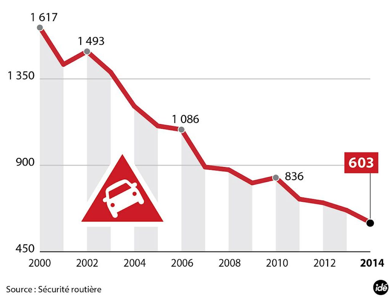 In July and August together, which traditionally account for the majority of fatal accidents on French roads, 603 people were killed compared to 666 in the same months in 2013.