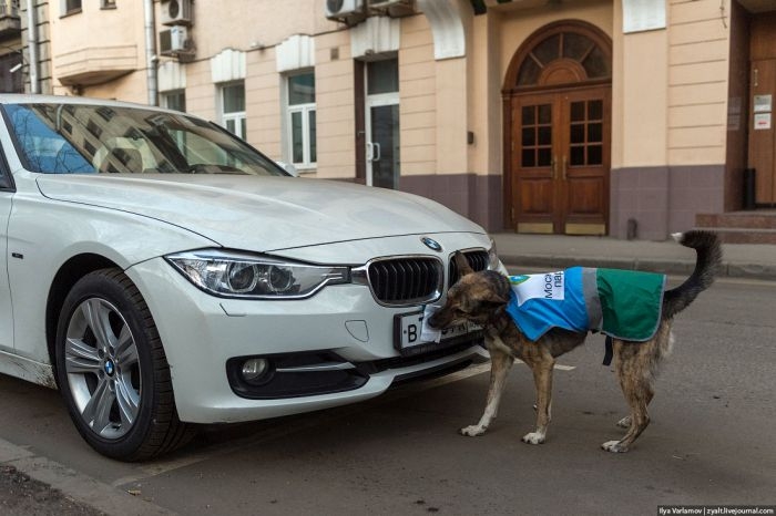 Specially trained dogs are a friendly and efficient way to ingrain parking culture in Moscow.
