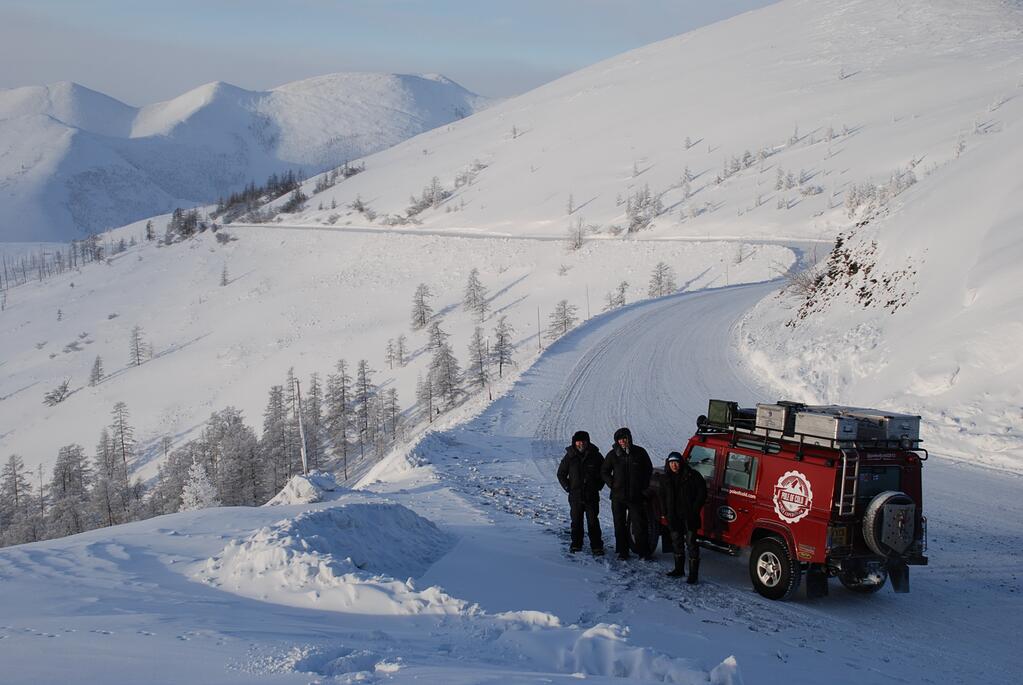 After 20,000km and nearly two months on the road the @PoleofCold2013 team – leader Felicity Aston, photographer Manu Palomeque and engineer Gisli Jonsson – finally arrived in Oymyakon, eastern Russia, the world’s coldest inhabited place, in late January. ‘The Pole of Cold’ has seen temperatures as low as -67.7⁰C but only dipped as far as -58⁰C on this occasion. Seen here heading back into Yakutsk, about 600 miles west of Oymyakon (Siberian mountain roads don’t close for the winter).