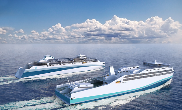 Marine engine supplier Rolls-Royce sees the market for ferries splitting two ways and has designed a pair of concept ships to illustrate its ideas. Clear Blue (above right) is a no-frills minimalist vessel designed to cut upfront investment. Roll-on, roll-off truck trailers double as galley stores and fuel tanks with pre-fab, modular cabins and shops easy-installed on top of the superstructure to minimise construction costs and a single no-ramp entry/exit for vehicles. Meanwhile, Dynamic Blue emphasises passenger comfort with services, shopping and stairs all on the port side and a glazed roof covering the public deck to maximise light and the feeling of space. Powered by different versions of Roll-Royce’s clean fuel Liquid Natural Gas (LNG) powered Bergen engines, the company says the designs cut energy use by 15-25%.