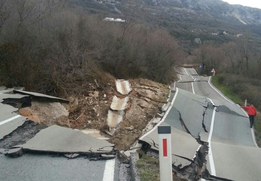 A road called ‘one of the most important in Montenegro’ – on the quickest route between capital Podgorica and the coast at Budva – is being washed away by a landslide reports Independent Balkan News Agency. The Western Balkans has suffered several episodes of severest winter weather, most recently heavy rain last week. With the landslide still active it is not certain the road will be in action for the summer. The detour, on a lower grade road, is 50km longer. Meanwhile, recruitment has started ahead of the country’s first motorway project, 170km from coastal resort Bar to Boljare on the Serbian border. The first shovelling should start in April. Photo via Twitter.
