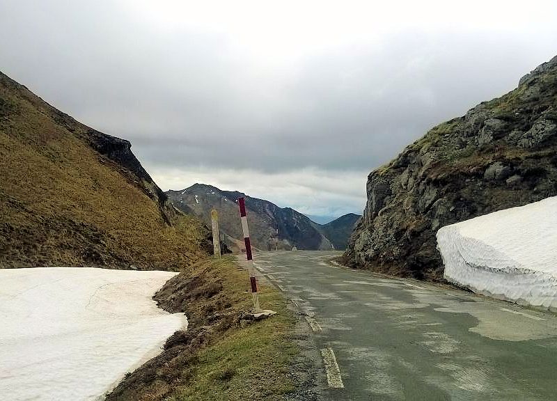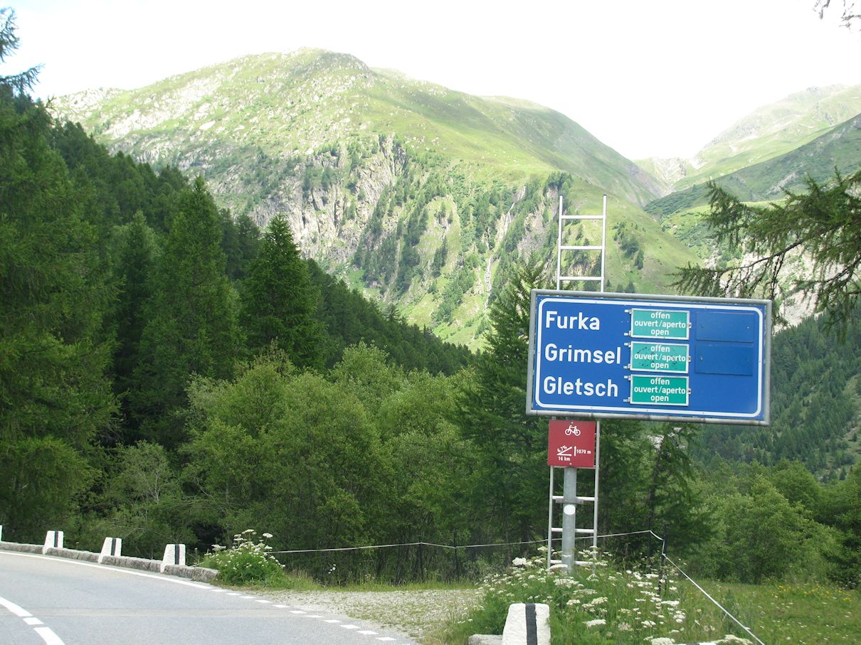 The beginning of June sees the nice-enough Nufenen – east-west from the bottom of Gotthard – and the amazing Grimsel Pass, which picks up from the east end of Nufenen, and the Great Saint Bernard Pass between Martigny and Aosta (Italy) in western Switzerland.
