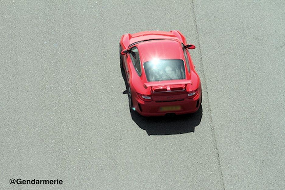 A convoy of British supercars – a pair of Porsche 911 GT3s, a Lamborghini Gallardo LP 570-4 Spyder and two others – was nabbed by the French police recently at ‘tres grand vitesse – very high speed’. The cars were pulled over at the southbound exit of the Peage de la Negresse on the A63 near Bayonne, within 35km of the Spanish border (having presumably driven the length of France). All photos @Gendarmerie
