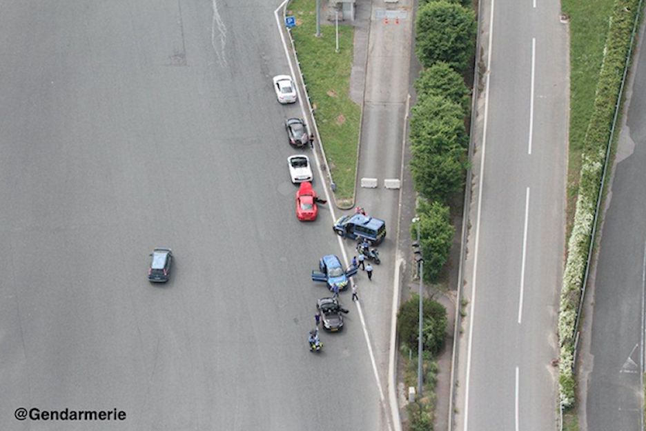 A high speed convoy of supercars gets pulled over at a peage in south west France, but not because police timed them between toll stations.