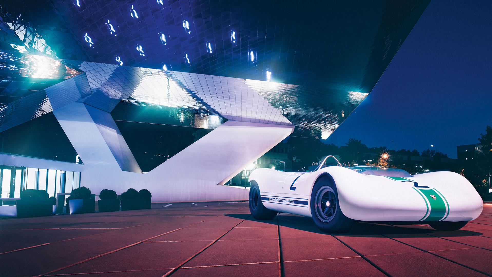 An end of year photo series from Porsche called No night at the museum (1). Various of its historic models are pictured outside Stuttgart’s architectural landmarks, including this 909 Bergspyder from 1968 at the firm’s very own Porsche Museum. See more.