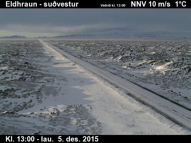 The webcams on Iceland’s national road agency website Road.is look out on some great landscape, like this at Eldhraun, almost on the country’s southern-most tip.